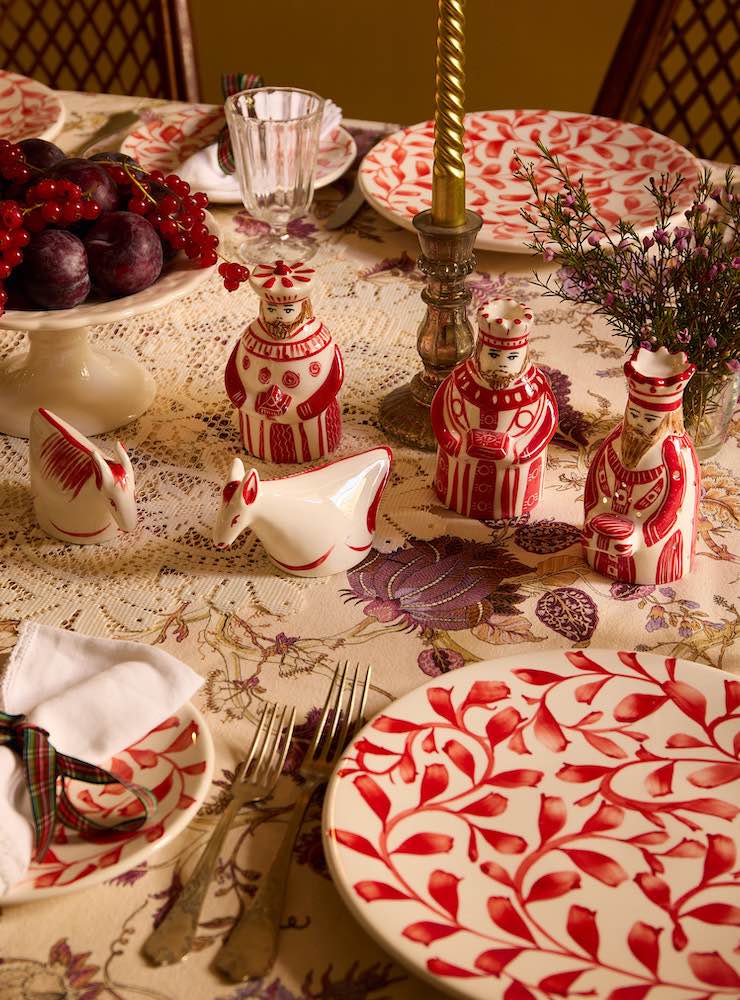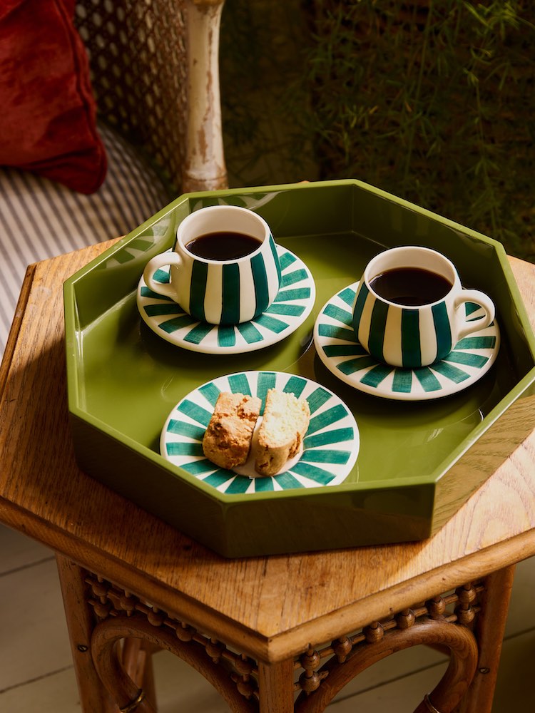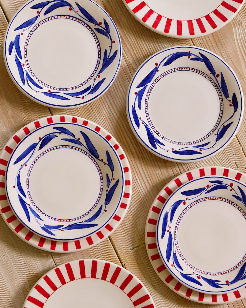Our cream scalloped dinner set looks wonderful on a table combined with our other Villa Bologna Pottery designs, such as the iconic scroll pattern or bold stripes.