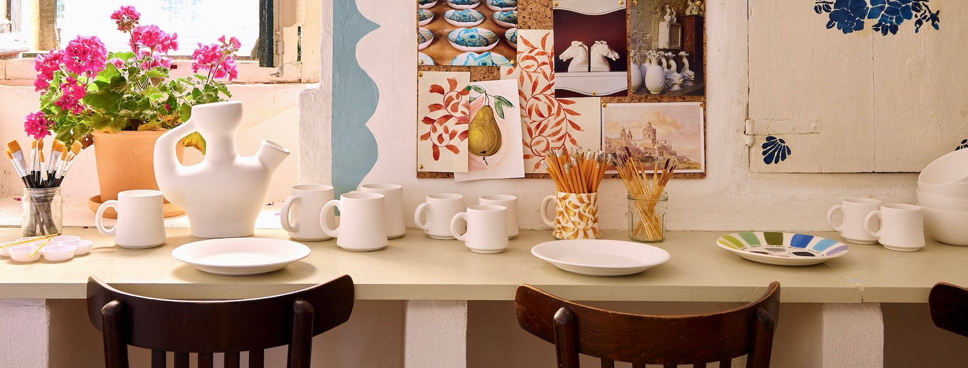 Step into the world of hand-painted ceramics with our Pottery Painting Workshops, hosted in the enchanting surroundings of Villa Bologna.