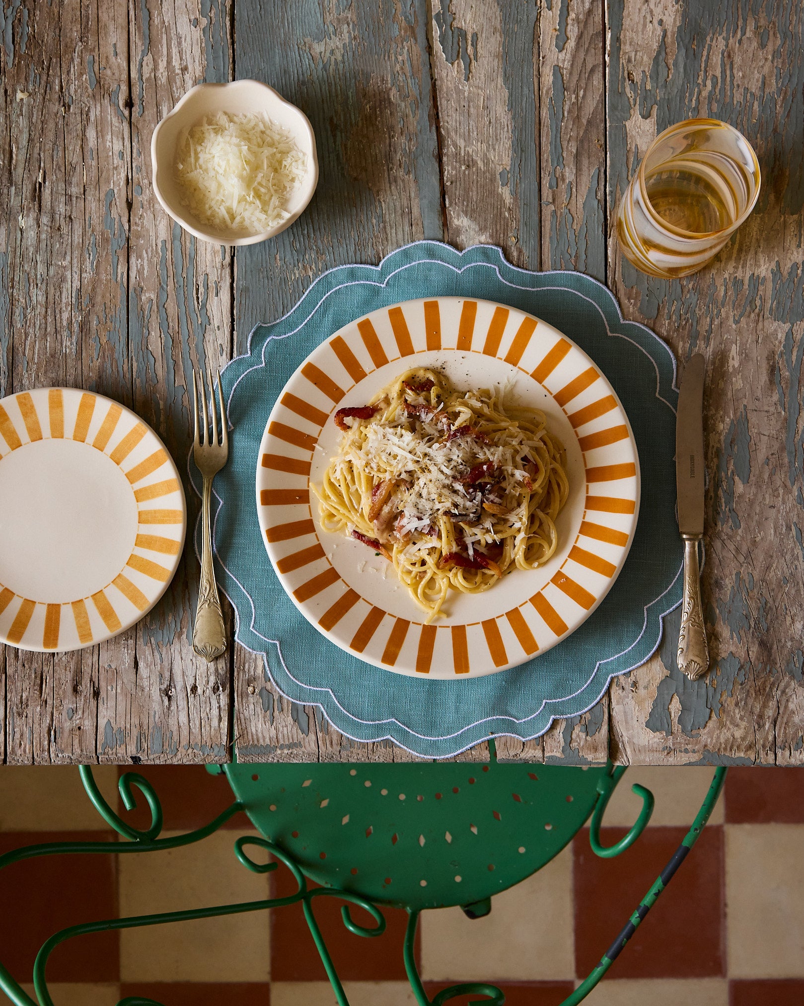 Put the egg yolks in a bowl, finely grate in the Parmesan, season generously with black pepper and mix well. Set aside.